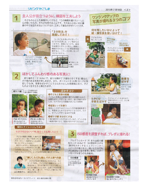 鹿児島のフリーペーパー『リビングかごしま』で、子ども写真撮影のコツなどのアドバイスをさせて頂きました。